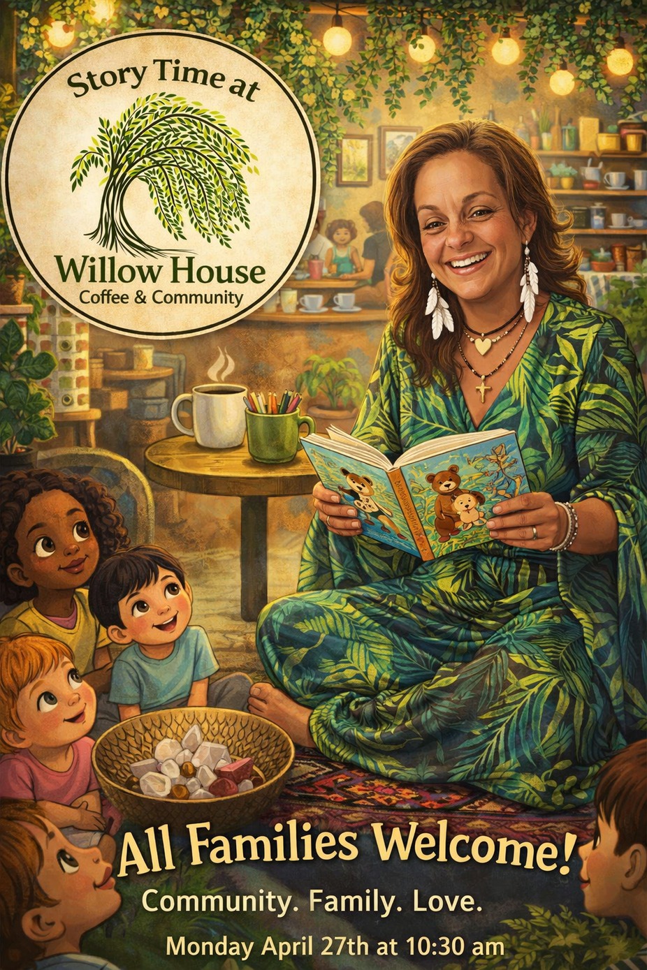 She is honored to host Story Time at Willow House, a space for cultivating authentic connection and belonging; where community and families of all kinds are always welcome.